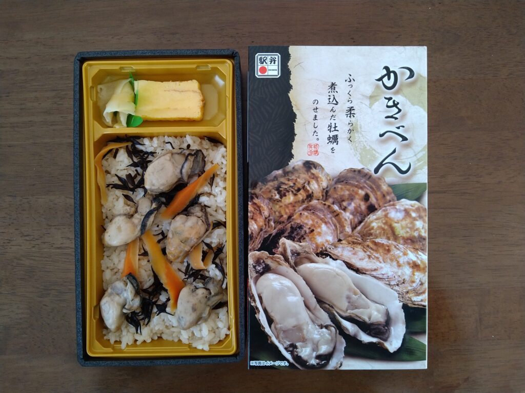 「どっさりかき弁当」(1180円)。その名の通り、特産の牡蠣(かき)が〝どっさり〟入っています。