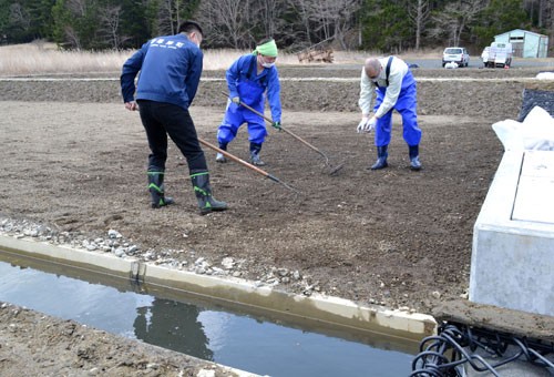 群生地復活目指しアッケシソウの種まき(2022-04-23)