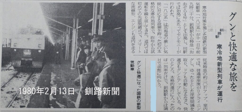 キハ183系出発式の模様を伝える釧路新聞(1980年2月13日付)