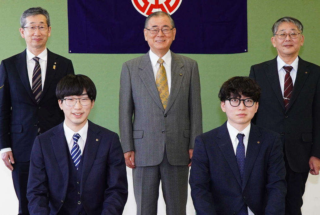 [写真/表彰状を手に佳作に選ばれた6人 ]