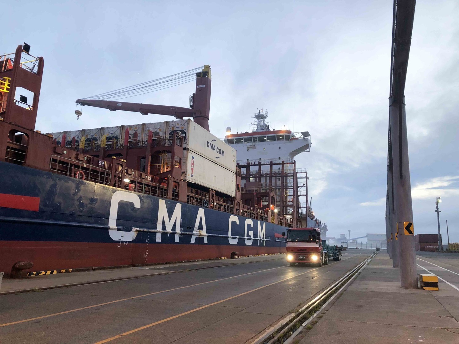 [写真/船倉からトラックに荷揚げされるホタテ(12日午前10時55分ごろ、標津漁港)]