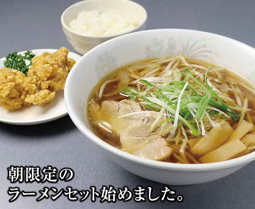 1月より朝の営業を開始した「くまねこ食堂」。その開始に合わせ朝限定のお得なセットメニューを提供しています。ラーメンは醤油・塩・味噌からお好きな味を選べ、ミニざんぎはミニシューマイまたはミニ春巻に変更が可能です。さらに小ライスが付いていて満足度の高いセットとして人気を集め始めています。1日のスタートにおいしいラーメンを食べて活力を高めましょう!