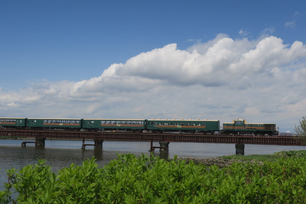5月下旬から、くしろ湿原ノロッコ号(釧路~塘路)は毎日のように運転しています。今年の釧路地方は気温が高く、緑の季節がとても早く訪れました。5月下旬に、初夏を走るノロッコ号を追いかけました。