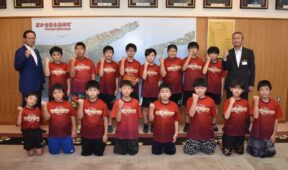 [写真/「ふるさと談義に花を咲かせましょう」と釧路鶴居会役員]