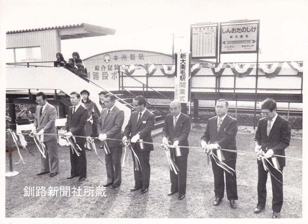 大楽毛の東方に新たに駅を設けたため「新」を付けた。開業当時は約2㌔北にあった釧路西高校(2009年3月閉校)をはじめ、専門学校などもあったので通勤、通学の利便性を向上するため設置されました。