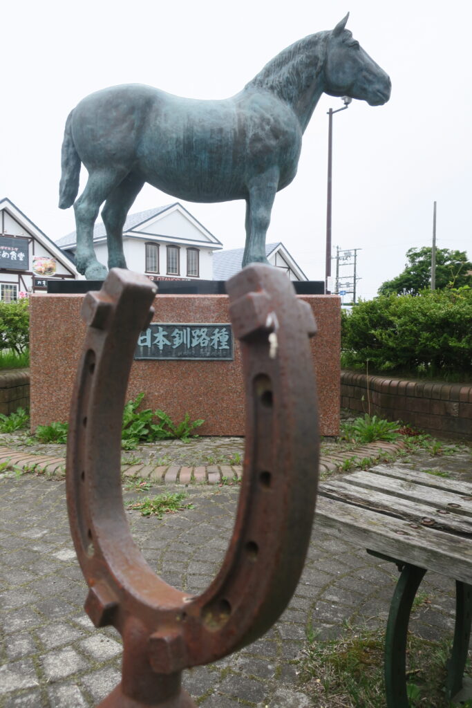 駅前にある「日本釧路種馬像」