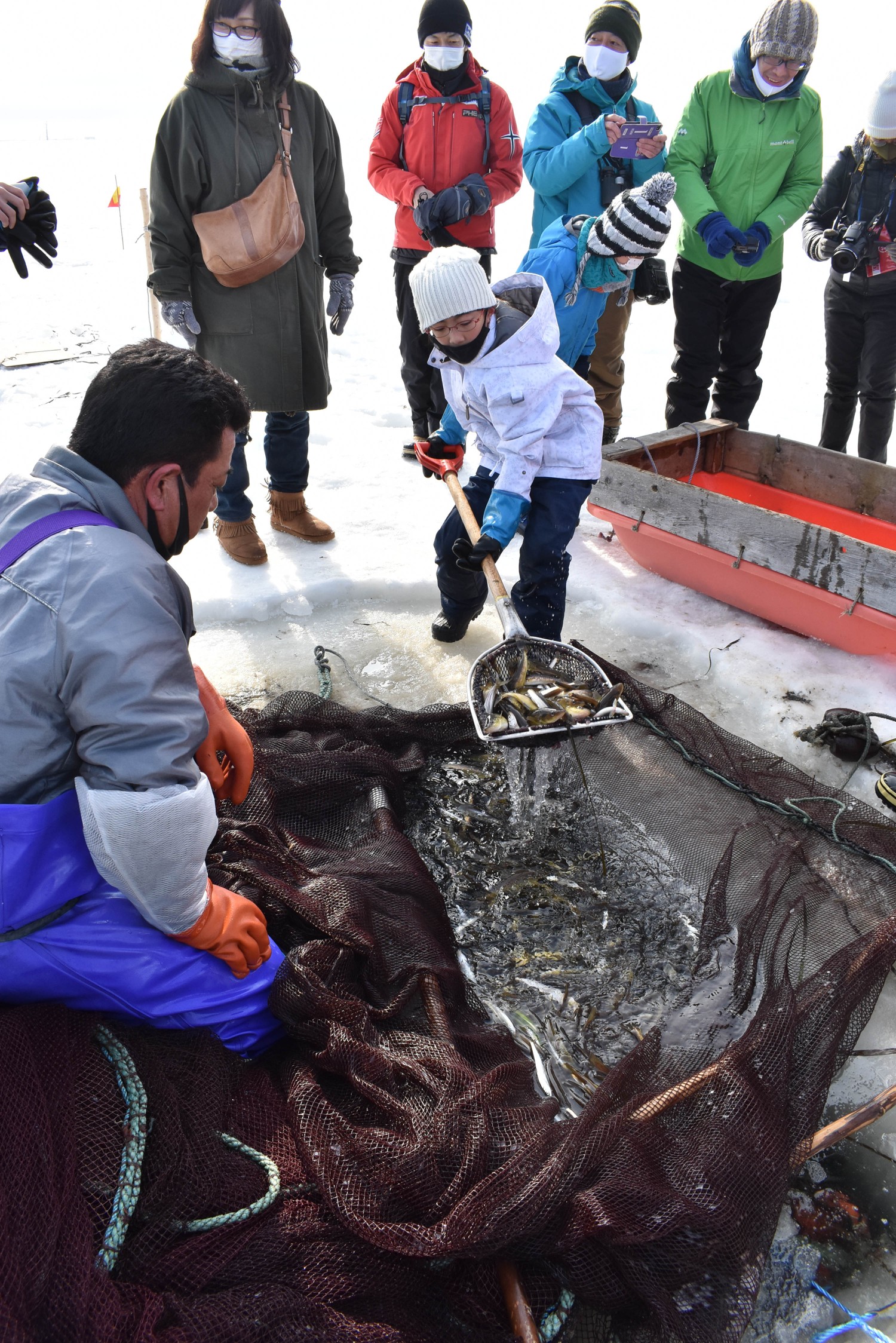同センターからスノーモービルが引っ張るそりに乗り漁場に向かい、網を起こす漁の様子を間近で見て、網を実際に引くこともできる。また、魚を目当てに飛来するオオワシやオジロワシなど希少な野鳥を至近で観察できることもある。