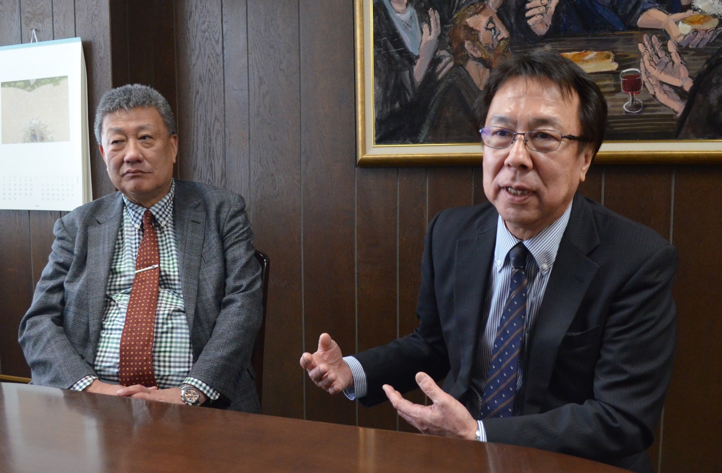 [写真/古川専務理事と来社した樽見事務局長(右)]