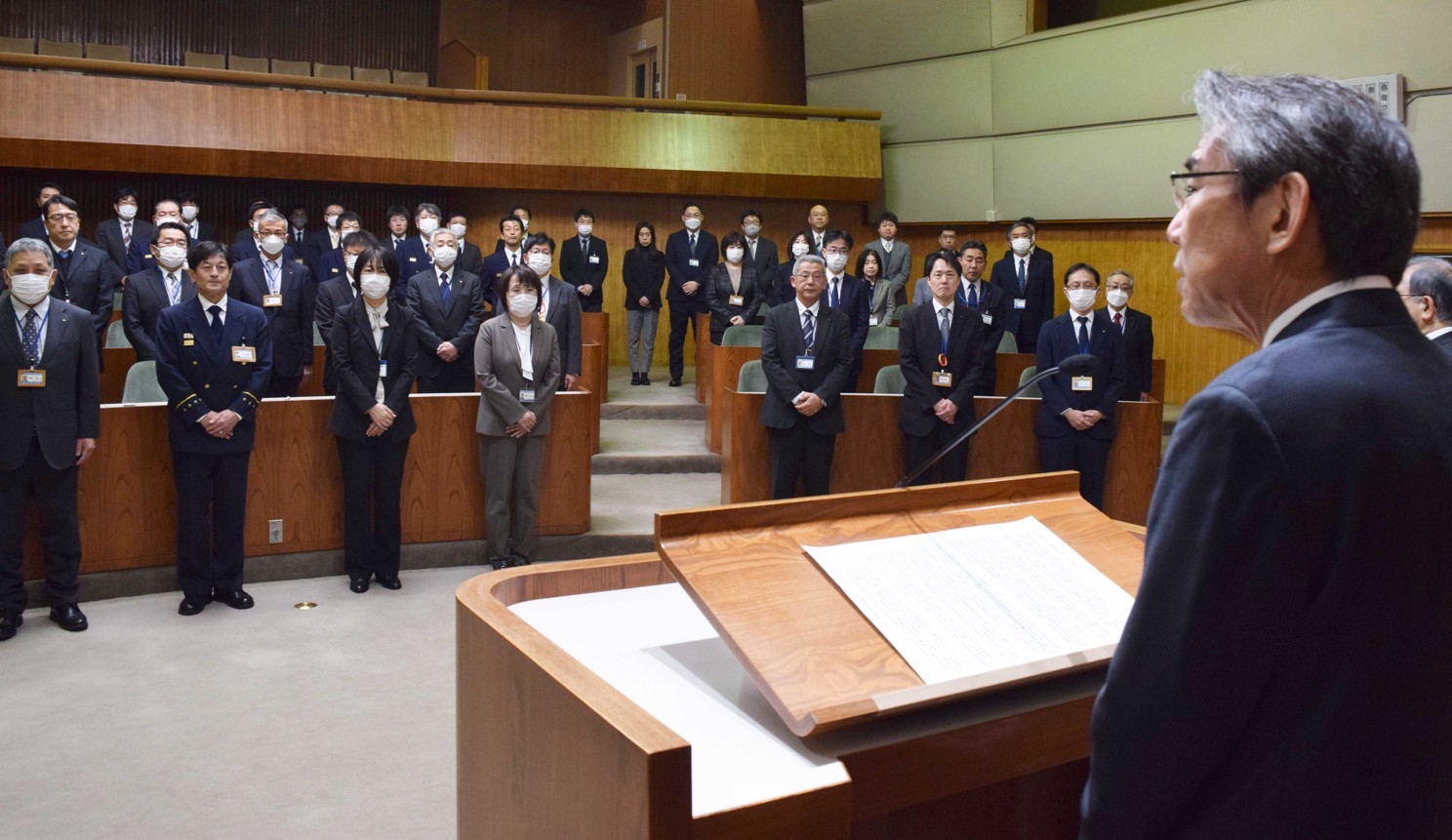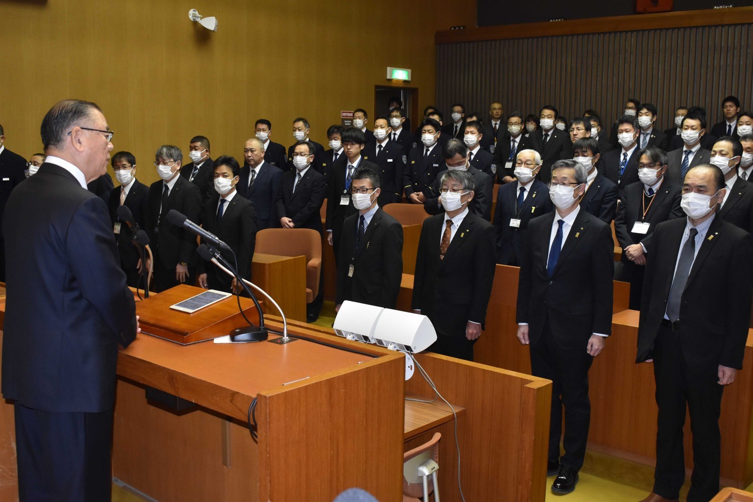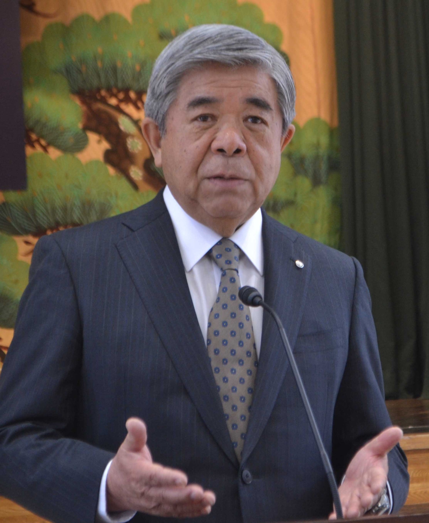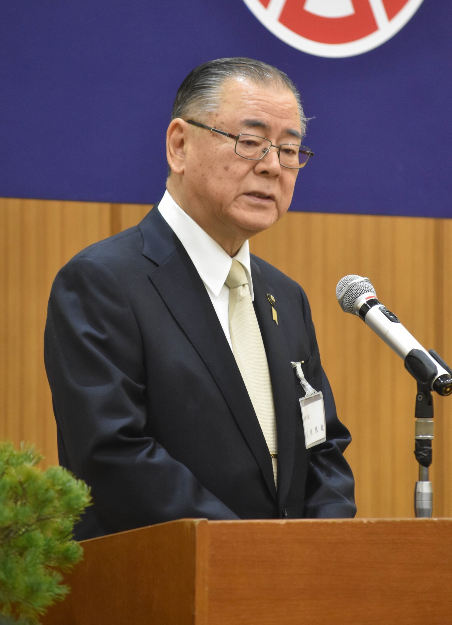 [写真/あいさつする森村理事長]