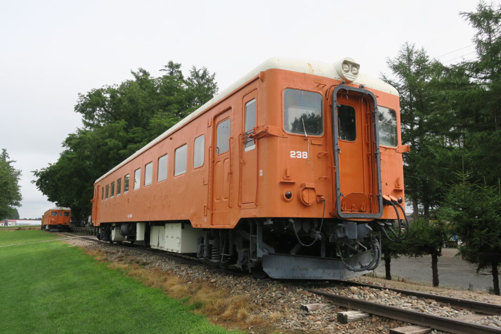 幸福駅跡の交通公園に保存されているキハ22-221・キハ22-238・モーターカー