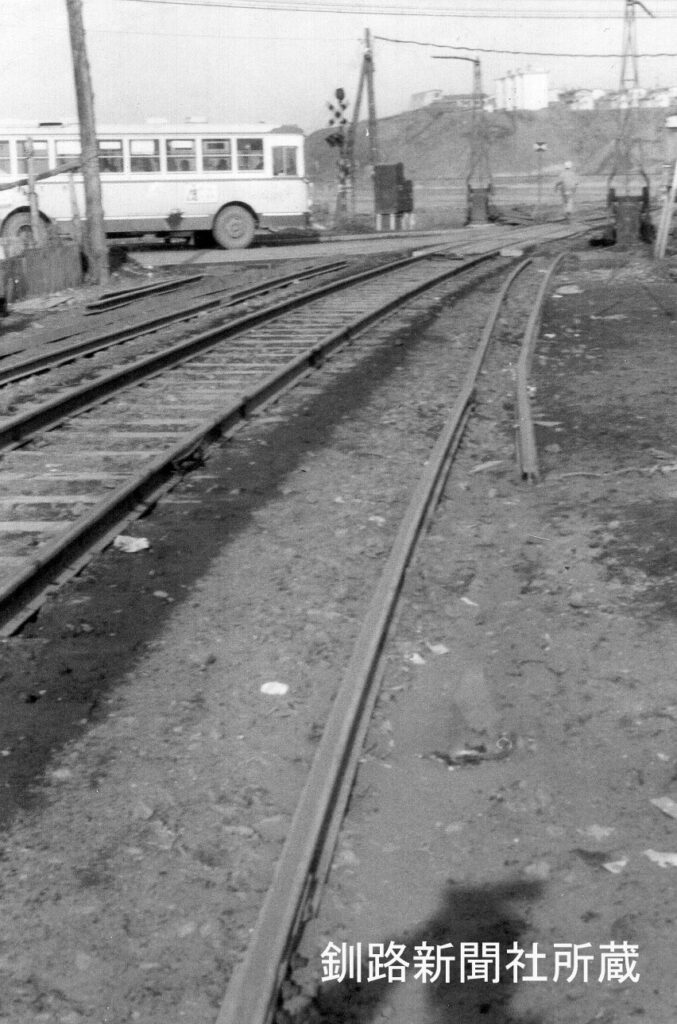 今はこ線橋になった根室本線の釧路駅の新富士方にあった〝開かずの踏切〟北中踏切(1969年7月)