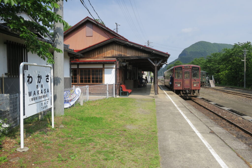 因美線の郡家(こうげ)から若桜(わかさ)までの19.2㌔の路線です。1930年に郡家から若桜までの国鉄若桜線が開通しました。若桜から兵庫県まで延伸する予定もありましたが、実現には至らず、1987年に第3セクター若桜鉄道として引き継がれました。