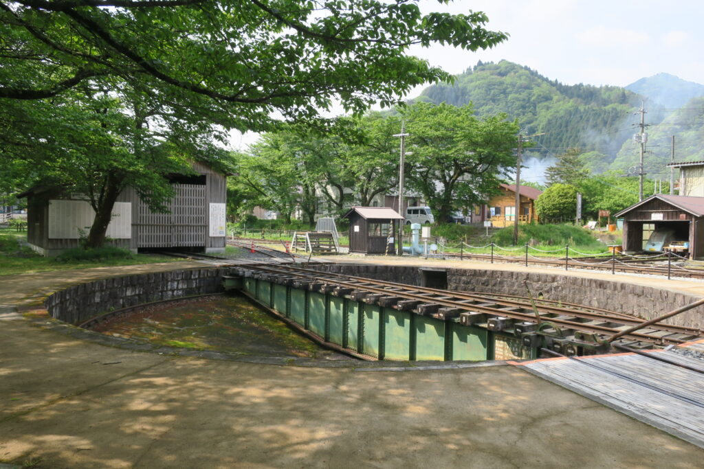転車台と、その先には謎?の車両が保存されているらしい車庫