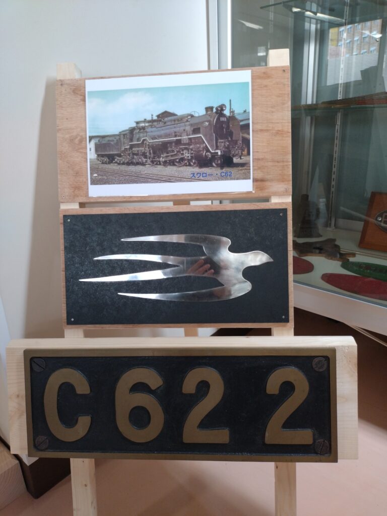 今月17日からSL冬の湿原号が走り始めるのを機会に、リニューアルしました。蒸気機関車(SL)のグッズを中心に展示品を増やしました。今は東武鉄道で働いているC11-207の「湿原号」ヘッドマーク、札幌と函館を結んでいた急行ニセコの先頭に立ったことのあるC62-2関連グッズ、C58-1のナンバープレートなどなどです。
