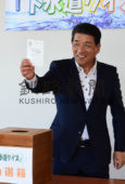 [写真/特等の抽選を行う馬立会長 ]
