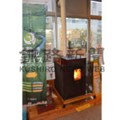 [写真/市役所本庁舎に展示されているペレットストーブ。募集件数こそ少ないが毎年必ず補助金の交付がある ]