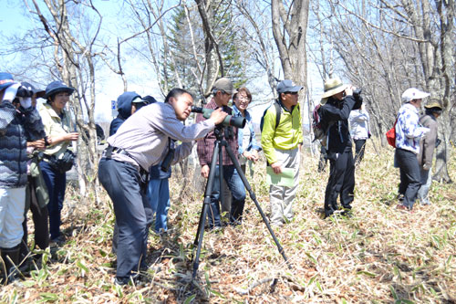 熱心に生態観察 春の湿原野鳥観察会(2019-05-05)