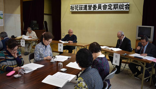 [写真/新年度事業などを承認した総会(桜花荘運営委員会) ]