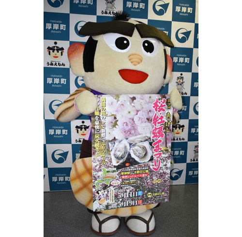 [写真/来場を呼び掛ける町公式キャラクター「うみえもん」 ]