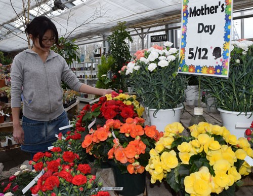 [写真/色鮮やかなカーネーションが並ぶシノハラ園芸 ]