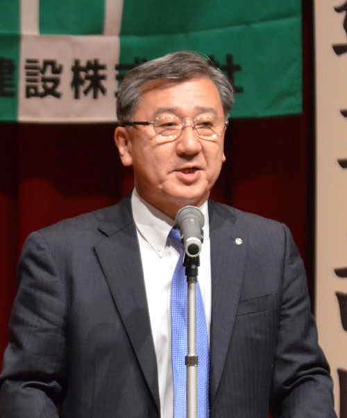 [写真/安全大会であいさつする白崎社長 ]