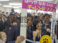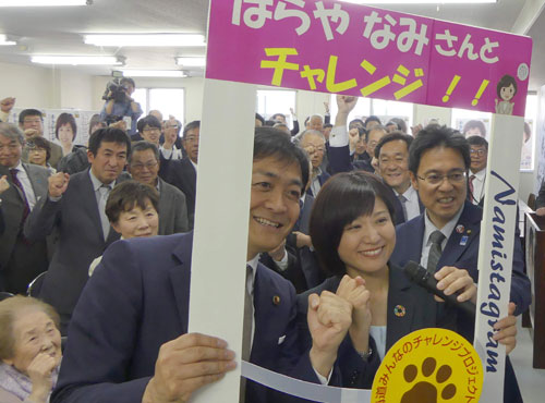 [写真/事務所開き後に、玉木代表とネット動画の撮影をする原谷氏 ]