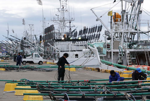 [写真/出漁準備に余念がない公海サンマ出漁船(12日、花咲港) ]