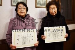 上[写真/短歌で入選した青木さん(左)と金田さん ]