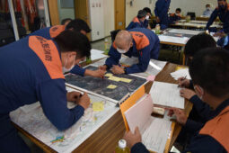 [写真/釧路川の氾濫を想定した図上訓練を行う参加者 ]