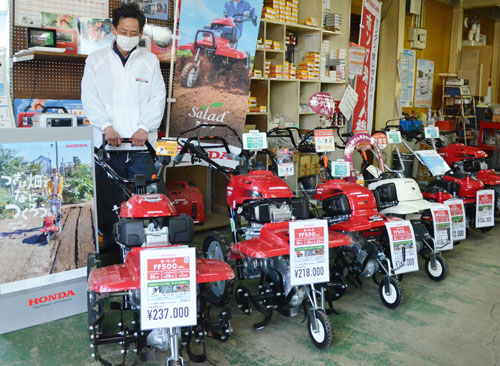[写真/期間中特別価格で販売するホンダ耕運機 ]