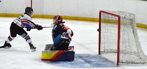 [写真/【Aプール、Daishin―TOYOTA CYGNUS】第3ピリオド4分、1対1の局面でしっかりパックを沈めたDaishinのFW小川 ]