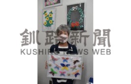 折り紙でカラフルなチョウの姿を表現 萩原さん作品展(2022-10-20)