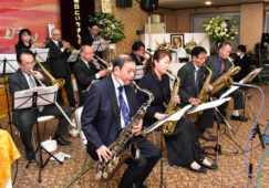 [写真/ゆかりの曲で故人をしのぶEPJOメンバー ]