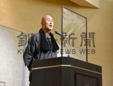 [写真/祝賀会であいさつする破郎エブリバディさん ]