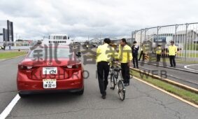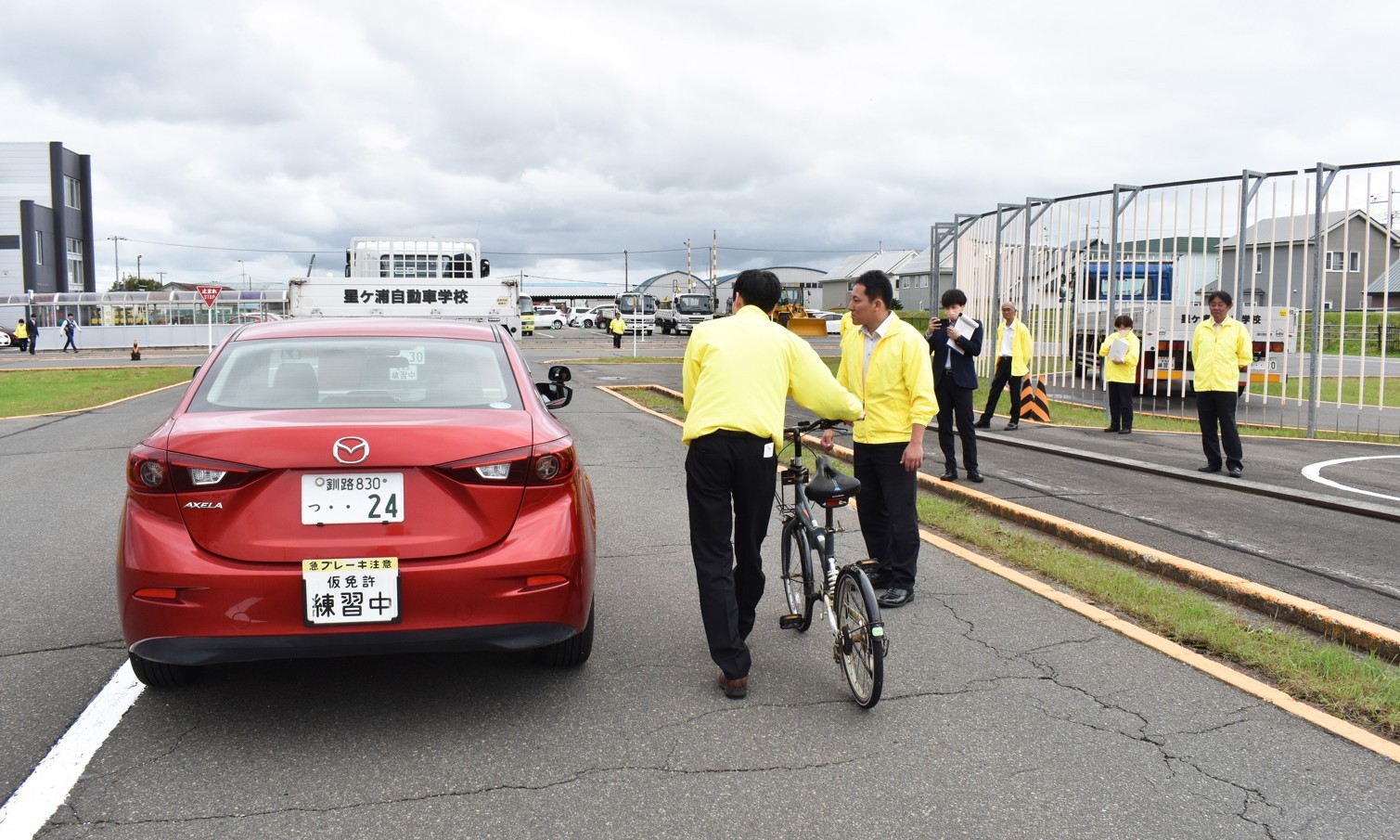 [写真/乗用車と自転車を使った死角体験]
