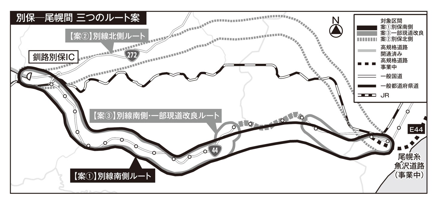 【元旦号6B】釧根開発 別保―尾幌間、3案作成(2024-01-01)