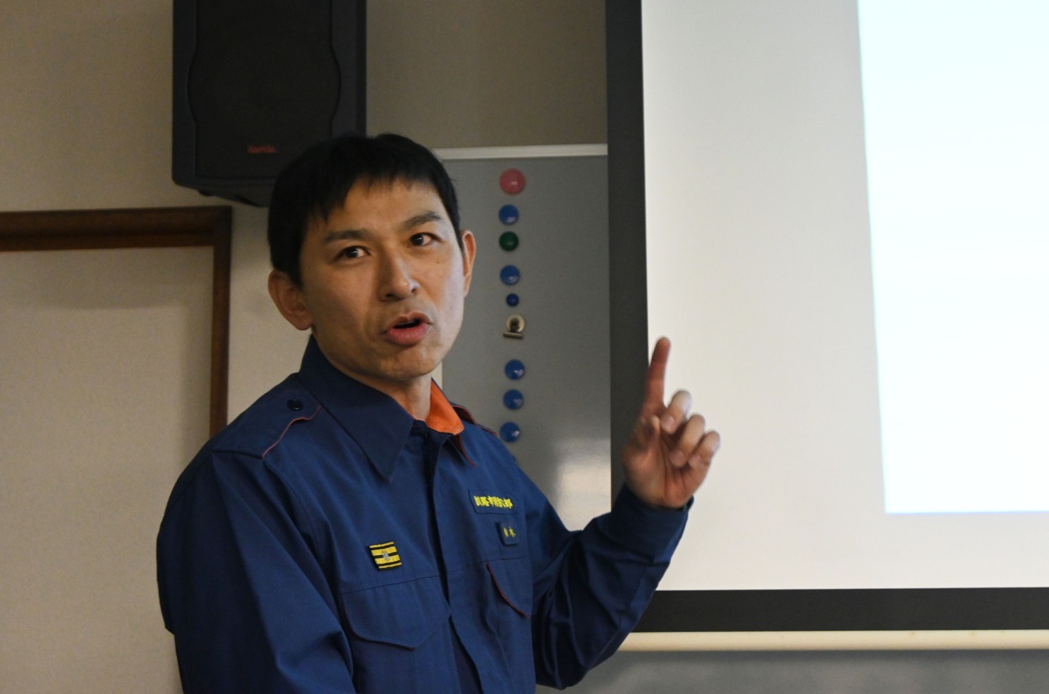 [写真/119番通報の事例などについて紹介する籾木専門員]