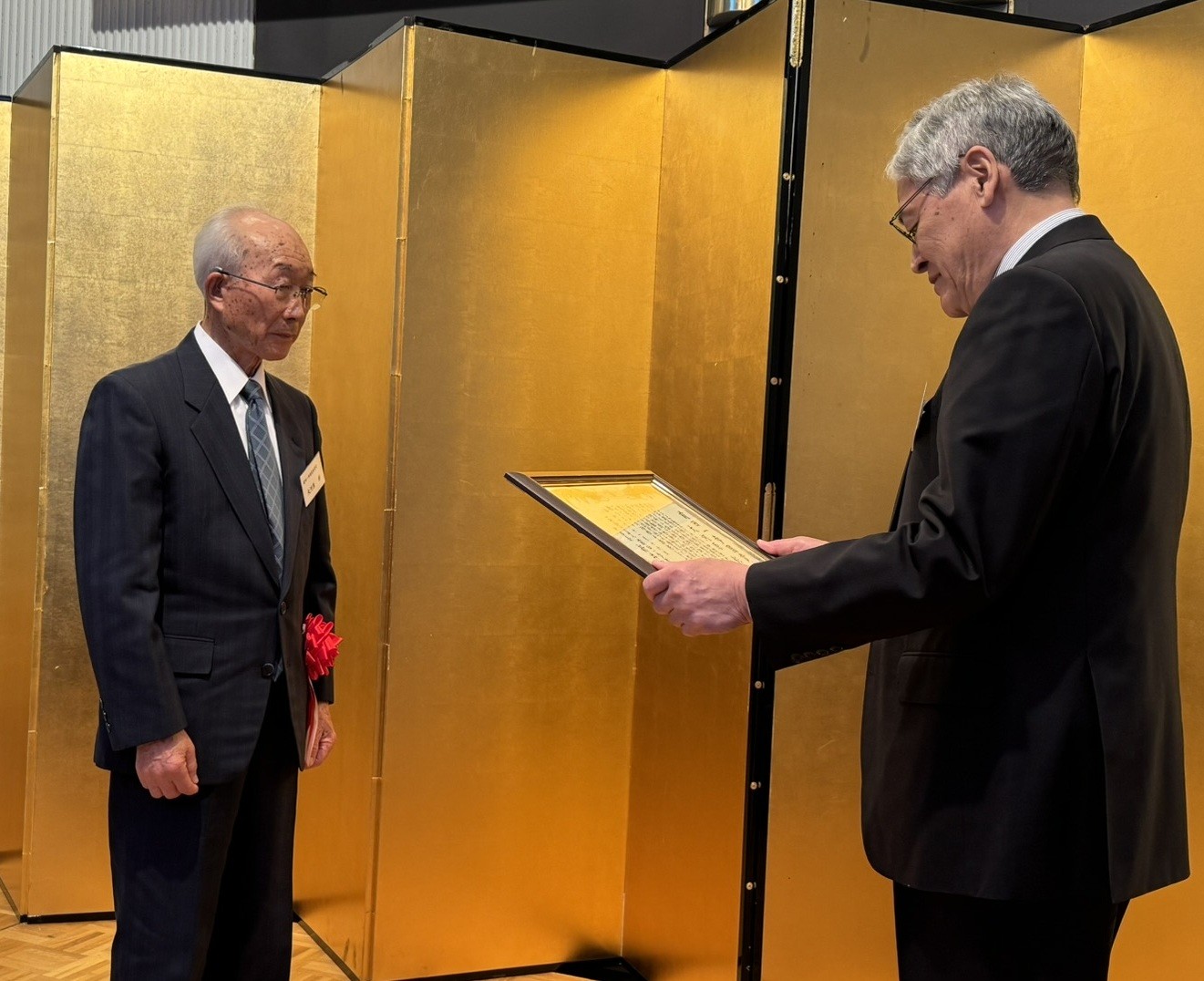 [写真/新井田理事長から前田一歩園賞を受ける大河原さん(左)]