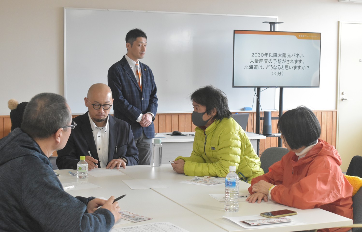 [写真/町内でのソーラーパネルについて意見を交わしたワークショップ]