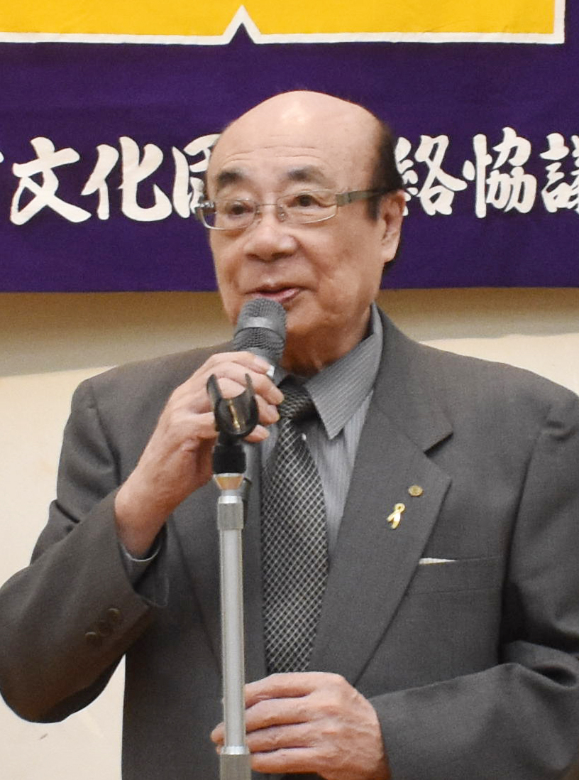 [写真/「輝く活動の年に」と呼び掛けた貝塚会長]