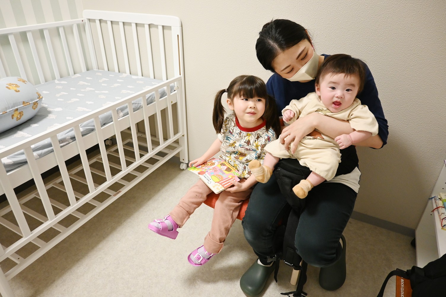 [写真/授乳室を利用した年代さん親子。個室内の様子]