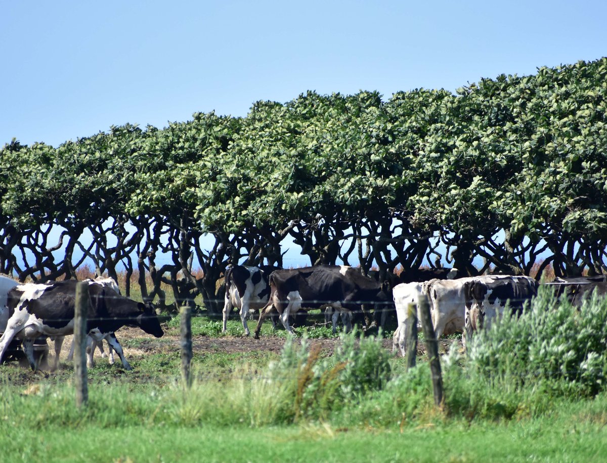 [写真/日陰を求めて乳牛も木陰に大移動(24日午前11時、北浜町)]
