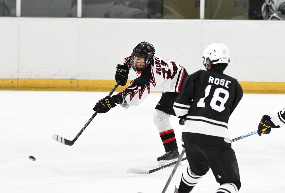 [写真/【高校の部決勝、武修館─釧湖陵・釧北陽】チーム最多4得点の活躍を見せた武修館の鈴木(奥)]
