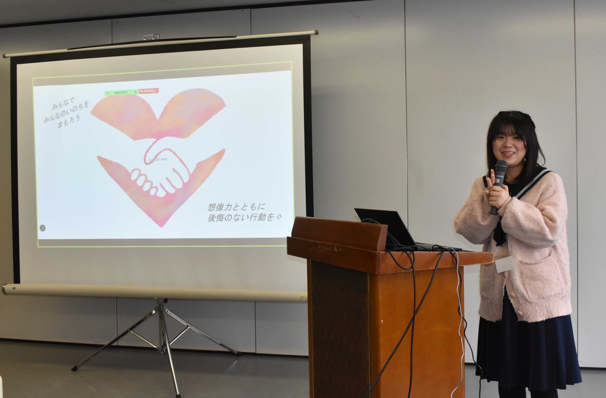 [写真/防災についての発表を行う釧路江南高校の山下さん]