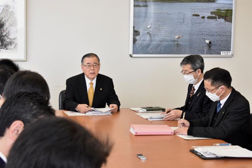 [写真/マスク不足などについて要請を行うことが示された本部員会議 ]