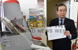 [写真/住民票の写しをコンビニ交付で取得する佐藤町長 ]